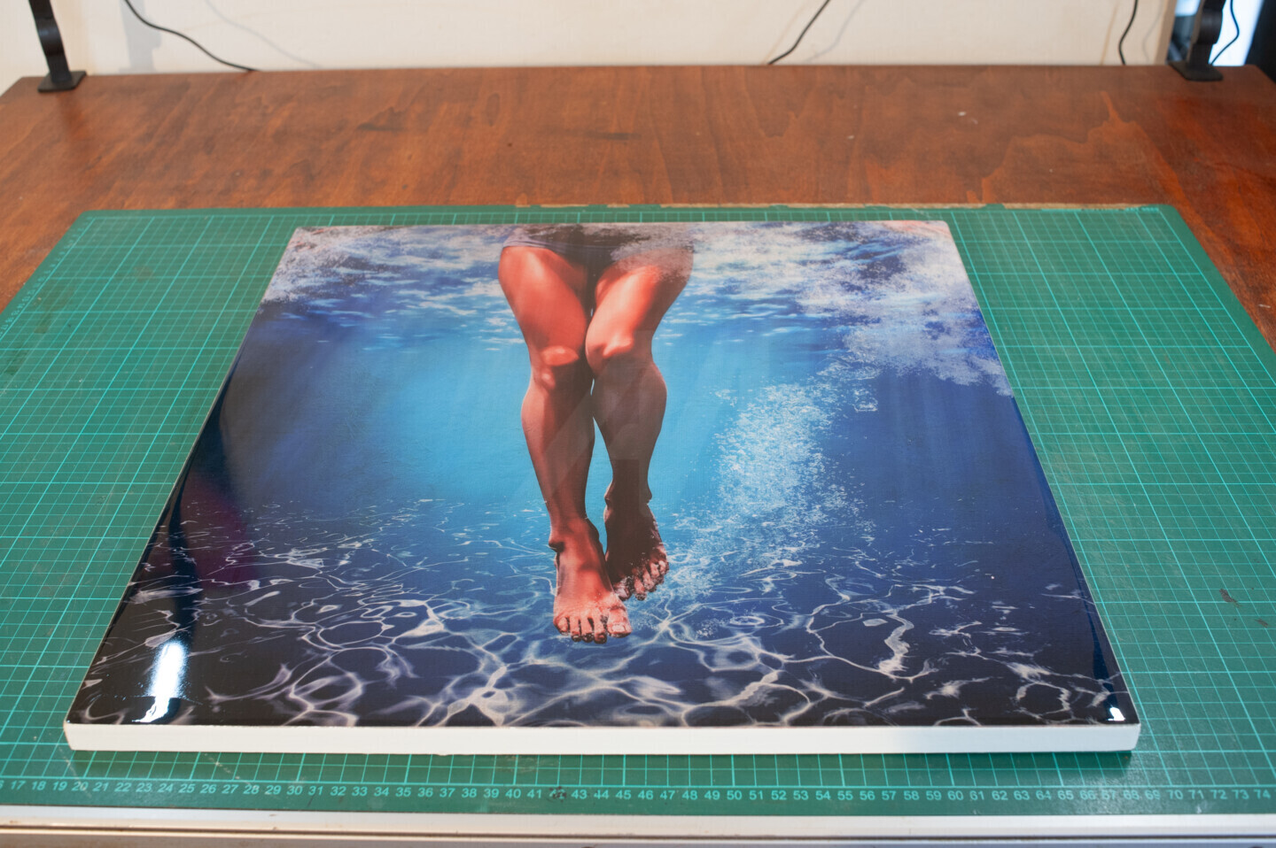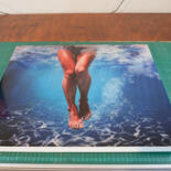 The interplay of sunlight filtering through the water transforms this simple act of immersion into an ethereal experience. The artist masterfully captures how light interacts with form, emphasizing reflections and fluid distortions, evoking a dreamlike beauty. The composition artfully balances clarity and abstraction, encouraging viewers to pause and reflect on the serenity and sensorial richness of interacting with water.