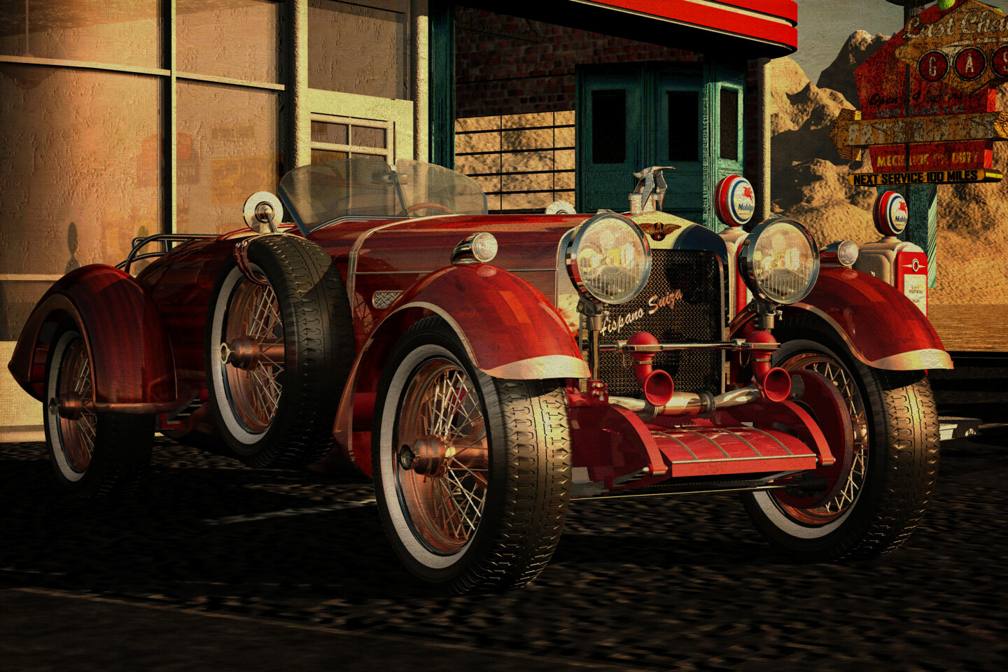 The 1924 Hispano Suiza H6 Tulipwood is an exceptional sports car in the range of vintage cars.... The Hispano Suiza H6 Tulipwood contributed a lot to the fame of Hispano. Here I have pictured this 1924 Hispano Suiza H6 Tulipwood at an old gas station.