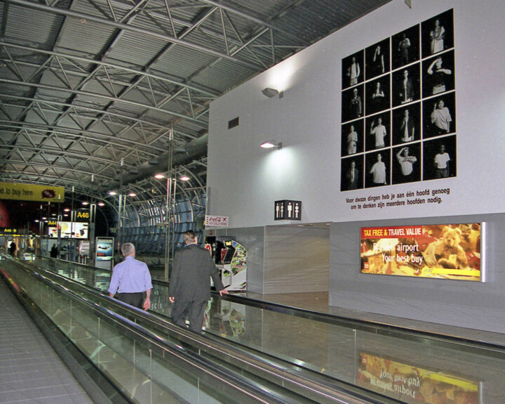 Permanent collection at Brussels Airport, showcasing art inspired by aviation and travel.